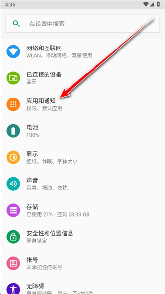 2.点击应用和通知。