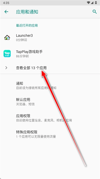3.点击查看全部应用。