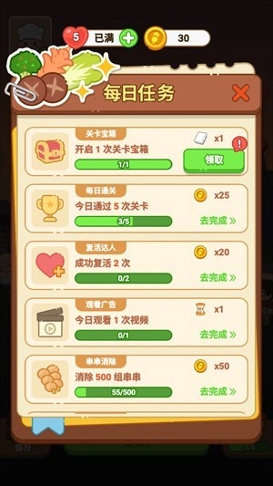 2、烤串的步骤十分简单,完成游戏里的任务,就能体验趣味十足的烧烤经营游戏