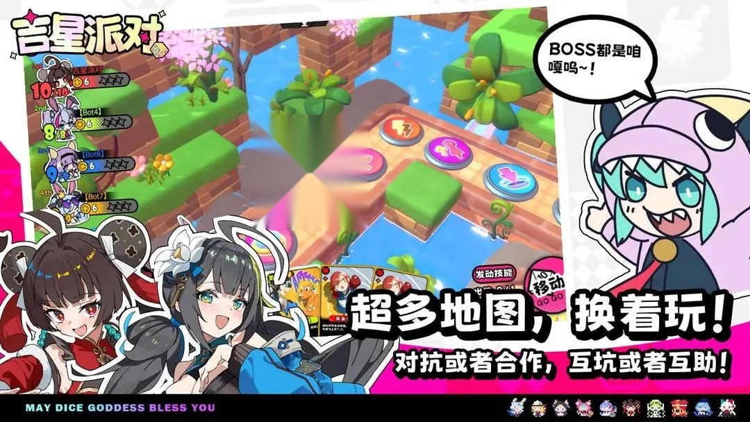 吉星派对日服这款派对类小游戏十分值得推荐,它最多能支持四位玩家同时在线游玩。游戏内有大量趣味角色可供挑选,每个角色都具备独特的技能属性。玩家需借助不同类型的卡牌发起对战攻击,其画风采用恶搞卡通风格,带来的视觉体验格外独特。还有更多有趣的玩法等着你来解锁,快来体验吧!