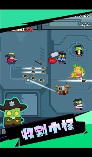 1、这是一款以轻松休闲为核心定位的射击游戏,操作难度很低,核心玩法非常简单——只需瞄准并射击关卡中出现的全部僵尸,即可顺利通过关卡。