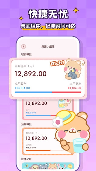 1. 快速记账:只需几步即可完成一笔收入或支出的记录,支持常用项目一键添加。