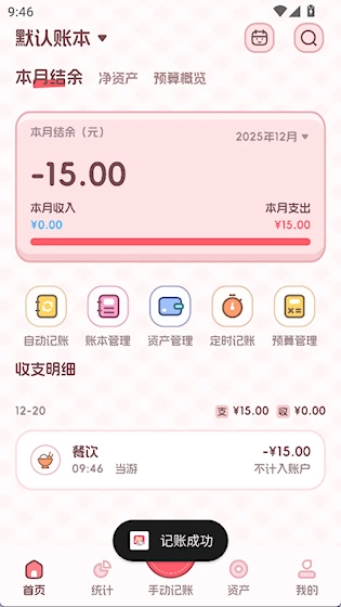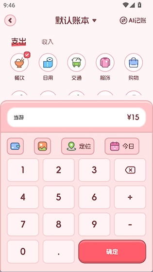 1. 界面简洁明了:不存在繁杂功能的堆叠,视觉呈现清爽利落,将记账这一核心功能作为重点凸显出来。