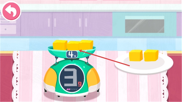 4、把方块状的食材放进秤上的容器里,调整至秤的显示数值为4克,这样就完成了这一步的材料准备工作。
