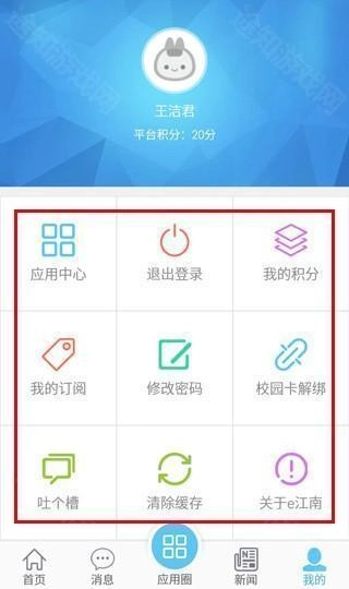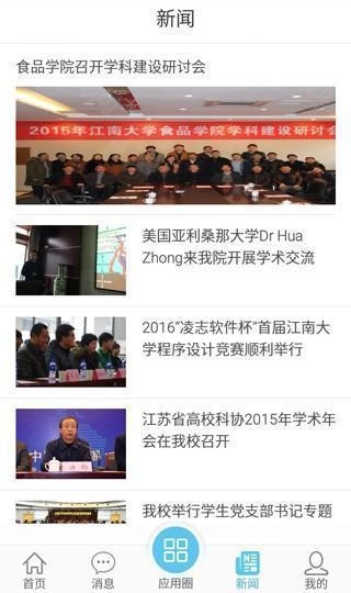 在本站完成e江南平台的安装并启动软件后,就能看到首页、消息、应用圈、新闻和我的这五个板块。