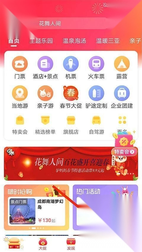 随时规划出行,说走就走,记得添加热门推荐和特价好物,别错过那些热销爆款和实惠低价!2. 支持预订全国超10000个景点门票,折扣低至9折起,还能对比价格,找出最齐全、最划算的选择,甚至可以直接在驴妈妈APP上查看详情!