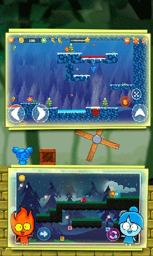 1玩家需巧妙控制一对拥有冰火不同属性的角色,在遍布元素机关的神庙中穿梭,借助二者的属性差异各类环境谜题。