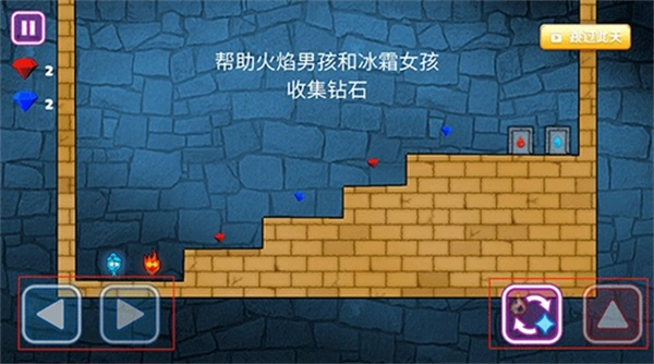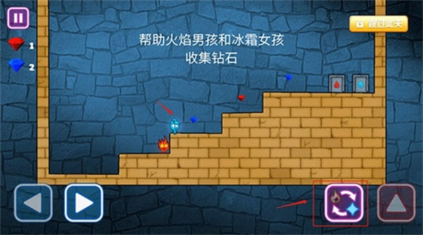 1.遇到元素障碍时先观察环境特征,火人负责融化冰门而冰人负责冻结岩浆通道。