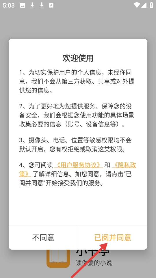 首次使用该应用时,请先阅读【欢迎使用】中的四条说明,阅读完毕后点击【已阅并同意】即可进入应用。