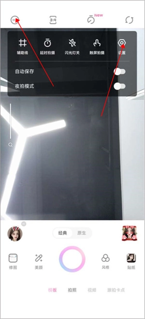 打开一甜相机,找到界面左上角的三个点图标并点击,即可进入设置页面。