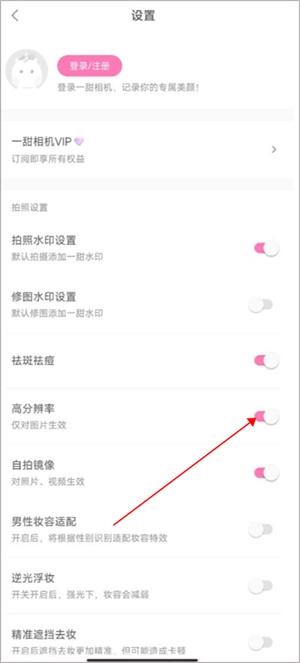 在设置里打开“高清分辨率”选项,就能提高照片的清晰度,更轻松地拍摄出高质量的作品。