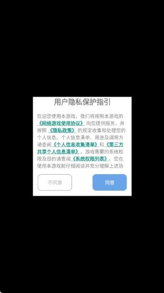 1、打开游戏阅读隐私政策和使用协议,点击同意即可开始游玩。