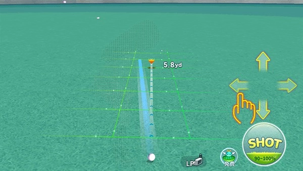 4、移动控制区域至预定的目标位置后,通过设置合适的击球强度,准备开始挥杆。