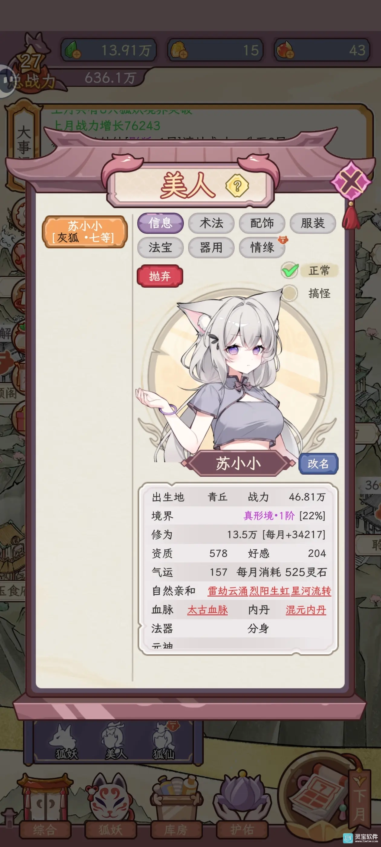2、狐妖养成