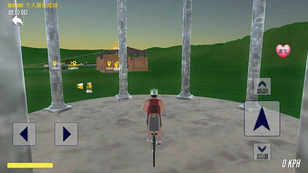玩家的目标是驾驶自行车抵达黄色光标的位置,那里就是目的地。