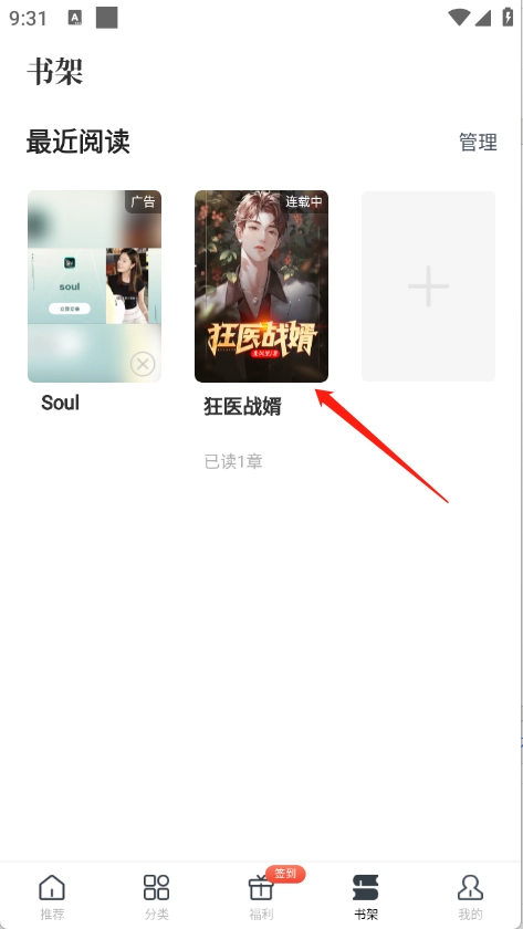 在“书架”可以看到收藏的小说。