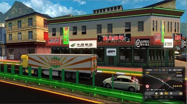 1、玩家可以驾驶重型卡车在城市中驰骋