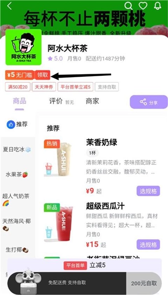 选中一家商家后,先领取左上角的无门槛券再下单。
