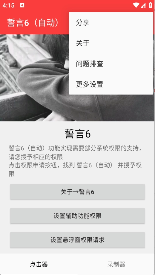 誓言6自动手机版是一款最新推出的连点器工具,本软件适用于多种场景,如抢票、抢红包、看书翻页等,可根据需求设置参数,支持自定义点击位置与大小,轻松调整点击参数,全方位满足不同场景下的自动化需求。