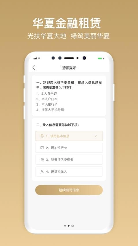 华夏金租是一款专注于融资租赁服务的平台软件,为用户提供优质的金融租赁体验。在这里,用户可以一键查询账户余额,清晰掌握收益状况,全面了解累计收益情况,方便更好地管理本期电费。同时,用户还能实时查看业务列表,详细追踪业务办理进度。平台支持消息管理功能,用户可随时查看公告信息,全面掌握融资审批进度,助力顺利放款。此外,华夏金租新版本新增融资申请担保人邀请功能,用户可随时填写担保人详细信息,轻松完成租赁流程。有需要的用户不妨来本站体验一番!