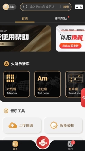 首页顶部的搜索框支持输入乐谱名称、关键词或者歌手名称来开展搜索。