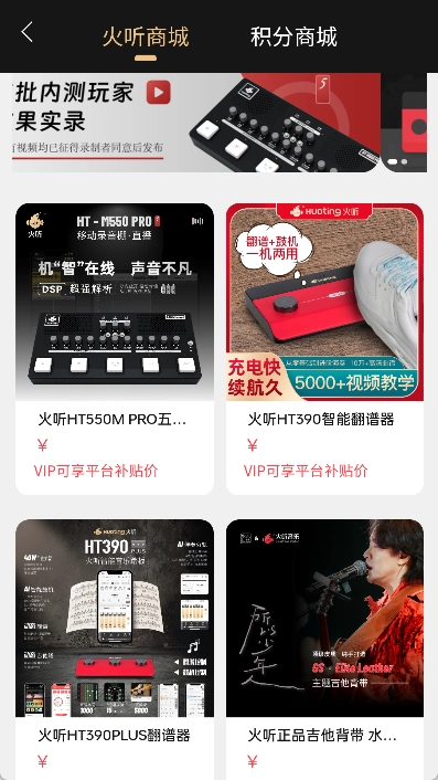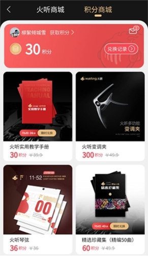 在个人中心里,点击“火听”或者“积分商城”这两个选项,就能进行商品的购买或者兑换操作。