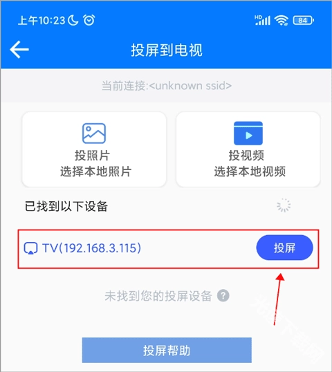 然后把内容投屏到电视界面,接着等待手机搜索到电视设备,最后点击对应的设备就能完成投屏了。