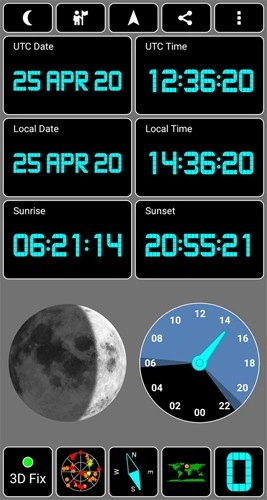 - 具备指南针功能,可展示您所处地区的昼夜情况、当前移动速度、对应时区的时间以及UTC时间。