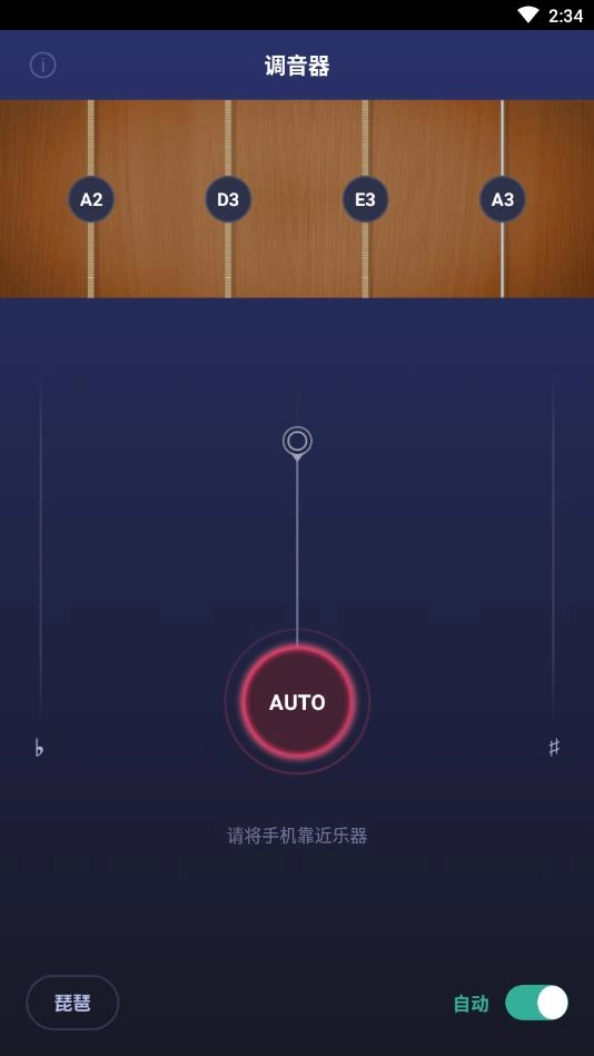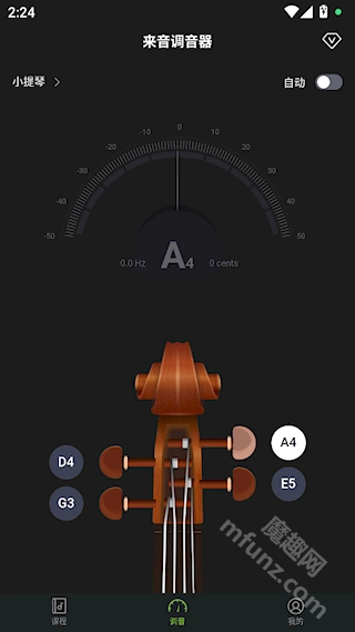 进入调音界面后,自动模式会依据频率来匹配琴弦;若关闭自动模式,则能够对指定的琴弦音准进行调节。
