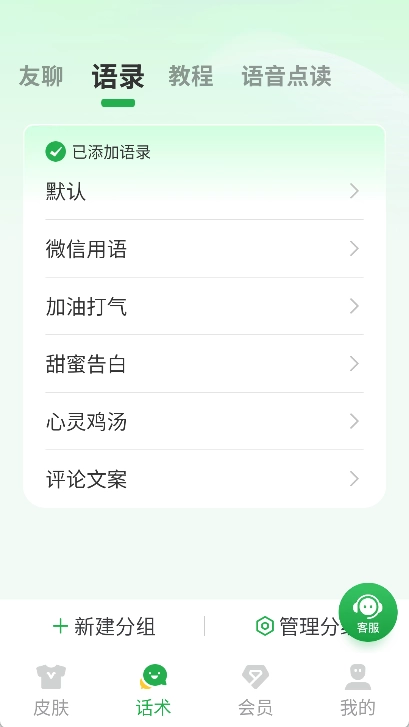 自主添加功能:允许用户在线自定义添加常用语录,以便更顺畅地开展聊天互动。