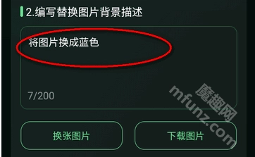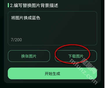 挑选合适的功能进入后,上传一张照片,撰写用于替换背景的描述,接着点击开始生成。