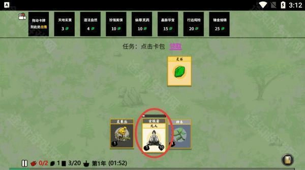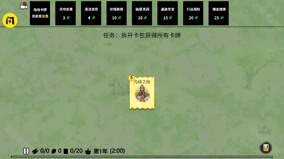 2、点击卡包就会出5张不一样的卡牌,内容都是随机的,但是初始必有一个凡人。