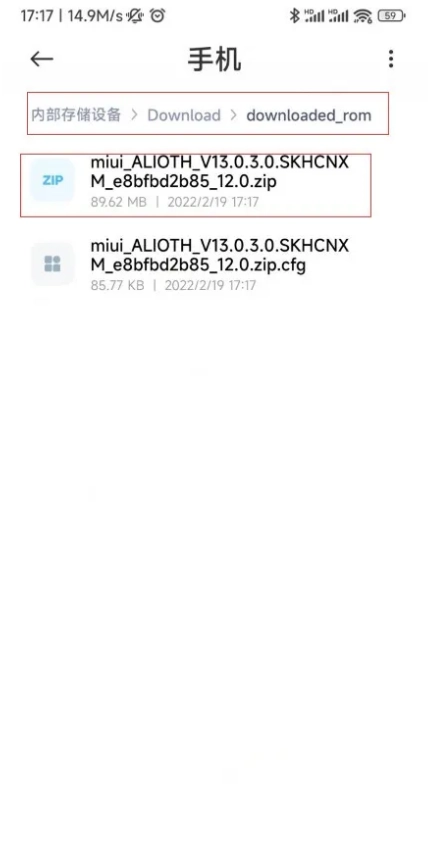把修复好的补丁复制回电脑,为刷入手机做准备,下面的图片展示了修复补丁的名称。