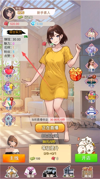 1、玩家在游戏里将化身为女主播,个人魅力越出众、直播花样越丰富,收获的粉丝量与点赞数就越高