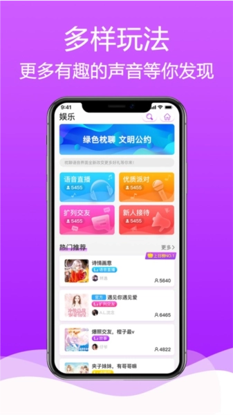 3、多人互动,点燃全场热情:加入多人语音房间,送出精美礼物,感受全屏特效带来的震撼体验,让你的每一次发声都能掀起热烈反响。