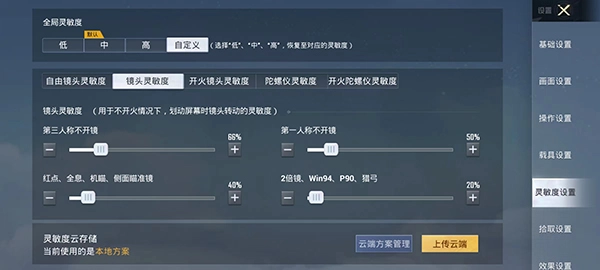 3、不开镜灵敏度设置:第三人称146%、第一人称1%、红点32%、2倍镜30%、4倍镜14%、3倍镜22%。