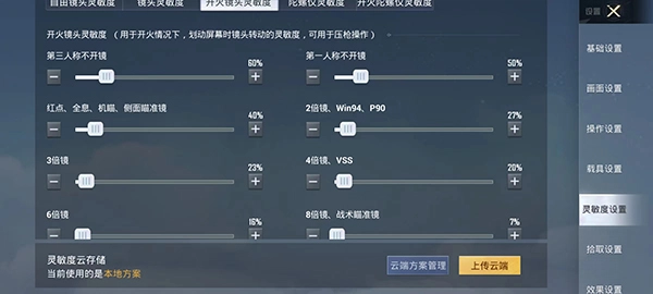 1、启动游戏后,进入设置界面,向下滑动页面找到“镜头灵敏度”设置区域。该区域包含八项设置,具体为:第三人称不开镜、第一人称不开镜、(红点、全息、机瞄、侧面瞄准镜)、2/3/4/6/8倍镜。若要调整灵敏度,点击对应设置项右侧的“+”号可提高数值,点击“-”号则能降低数值。