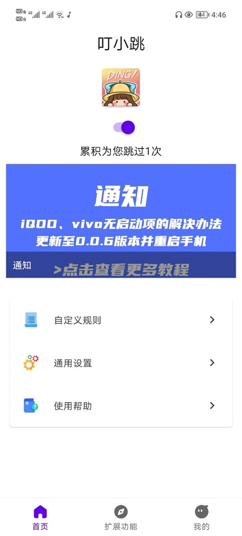 设置完成后回到主界面,这时跳过广告的功能就已经开启了,能自动跳过应用的启动广告。