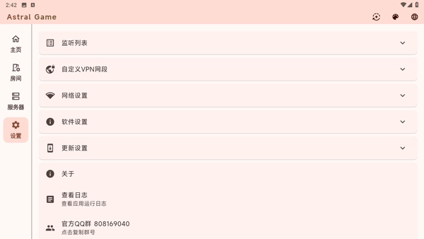 astral是一款专门用于游戏联机的工具,能让我们轻松享受联机的乐趣!而且它没有距离限制,即便和好友相隔两地,联机时的延迟也极低,就像大家坐在同一个房间里一样。这款联机工具支持的游戏挺多的,像《我的世界》《泰拉瑞亚》这类热门沙盒游戏都包含在内。另外,手机版的astral软件是完全免费的,我们不需要花费任何费用!