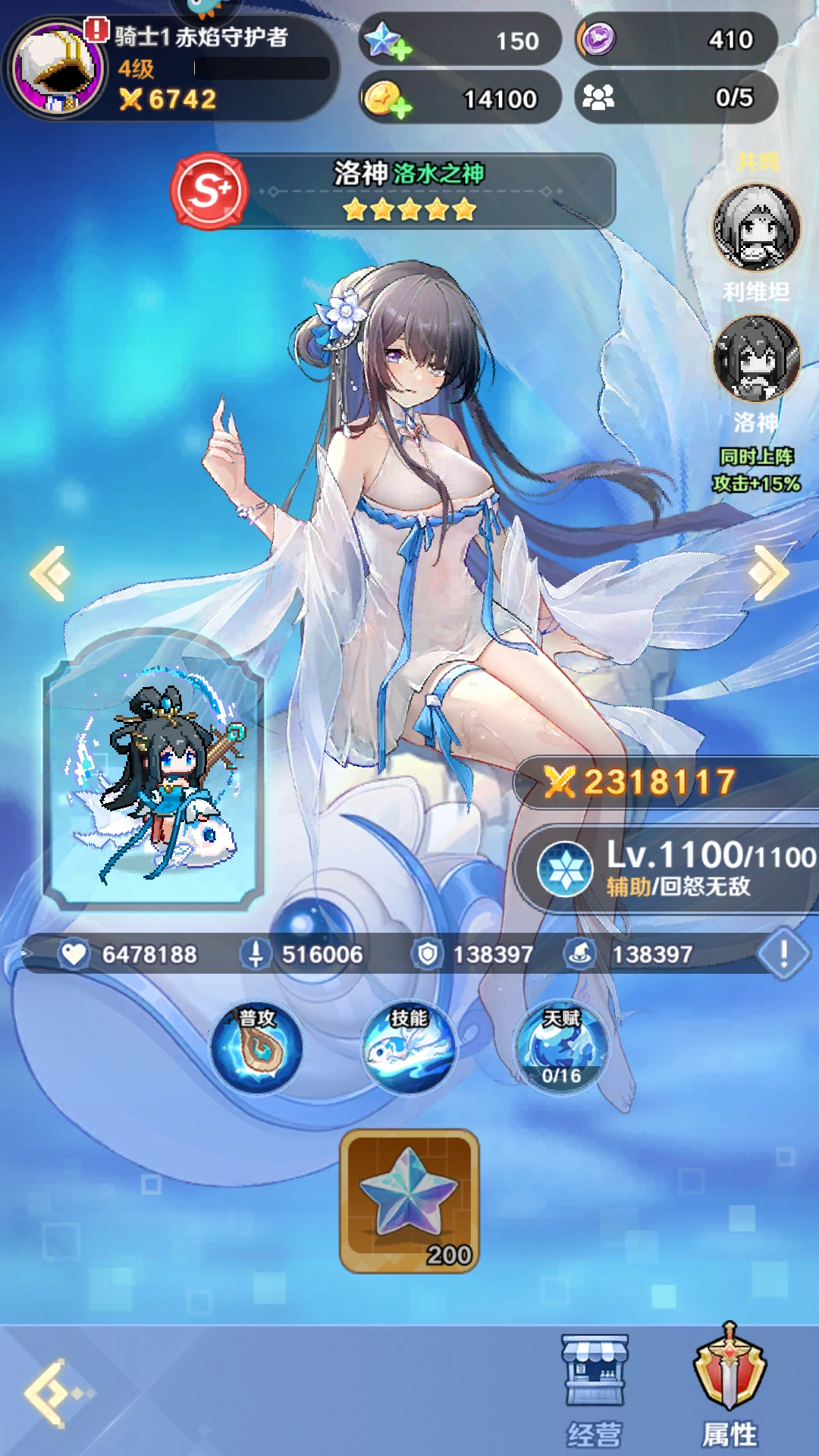 持续输出核心角色:若有氪金计划,至尊月卡的青龙降临可获取一个,竞技场积累2300积分也能兑换一个,前期能稳定拿到两个,方便后续升星。该角色特点是输出暴力,适用场景比露娜广得多——多数情况下,50%的伤害加成收益甚至略高于100%的无视防御效果。前期伤害突出,是所有玩家开局都需优先培养的角色;不过到了后期,由于输出方式单一、极度依赖暴击,且仅针对前排输出又缺乏无视减伤的手段,导致输出能力会显得疲软。