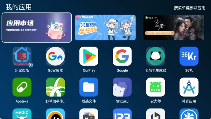 乐家桌面是一款专门为智能电视和智能盒子打造的桌面管理软件,它不仅能为用户带来便捷的应用管理与文件管理服务,还具备智能推荐和分类管理的特性,是一款非常值得推荐的智能电视桌面管理工具。