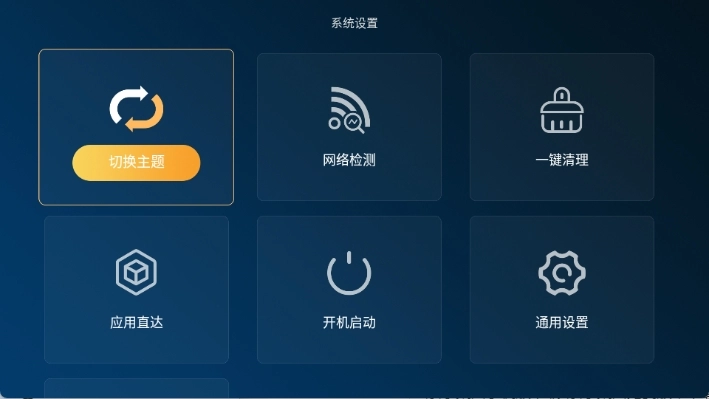 乐家桌面tv版具备主题切换功能,同时提供网络检测、一键清理、应用直达、开机启动、通用设置等实用功能。系统默认预装了部分应用,点击即可直接使用;点击“全部应用”可对已安装应用进行管理,按菜单键还能删除已安装的应用。
