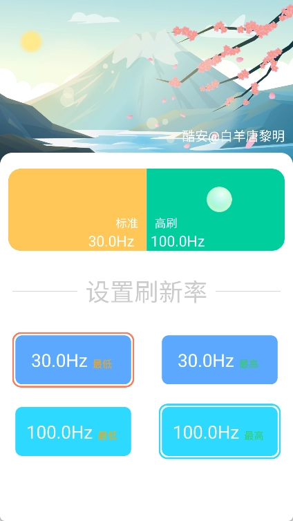 选择刷新率:打开应用后,在主界面随即会看到多个刷新率选项,像60Hz、90Hz、120Hz以及144Hz。