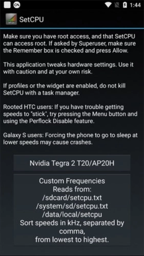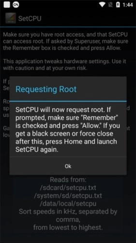 Root:SetCPU需要获取Root权限,才能对CPU速度等相关设置进行修改。