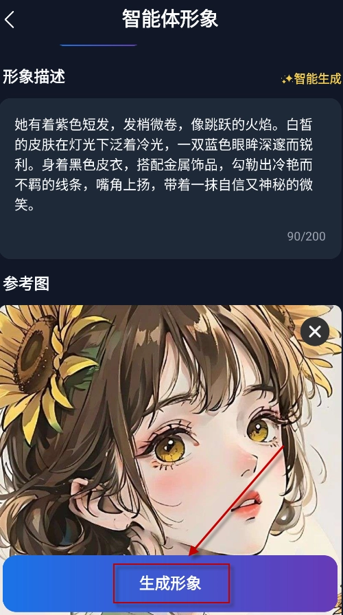 先对角色形象进行描述,再从手机相册里上传对应的形象图,最后点击“生成形象”这个选项。