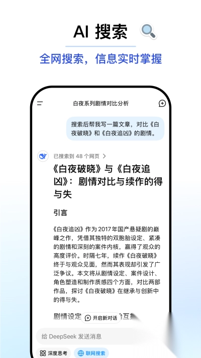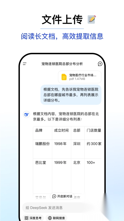 DeepSeek App是深度求索公司推出的人工智能应用,依托前沿的自然语言处理(NLP)技术,具备理解、分析及生成优质文本内容的能力,可应用于各类场景。该应用提供精准的问答服务,允许用户上传多种格式的文件,从中提取文字信息,还能对文件内容进行总结、分析或生成报告。其强大的数据分析功能能够助力用户从海量文本数据中提炼关键信息,并生成可视化报告。