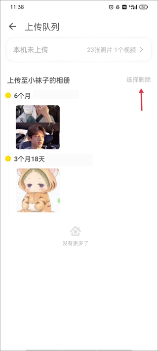 在这里你能看到按时间展示的相册列表,点击“选择删除”按钮。