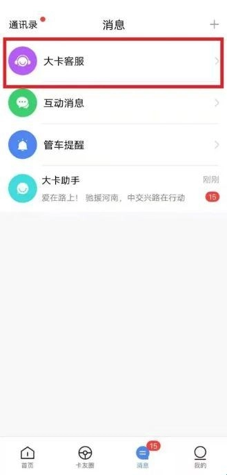 在消息界面里找到并点击“大卡客服”,就能联系到客服人员。