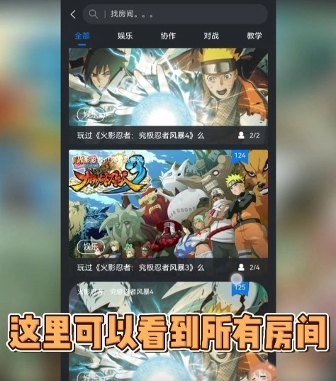 先进入想要联机游戏的房间,点击【游戏房间】。