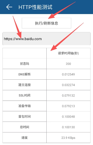 进入「站点测试」功能,输入网址并点击“执行”按钮,就能知晓相关情况了。